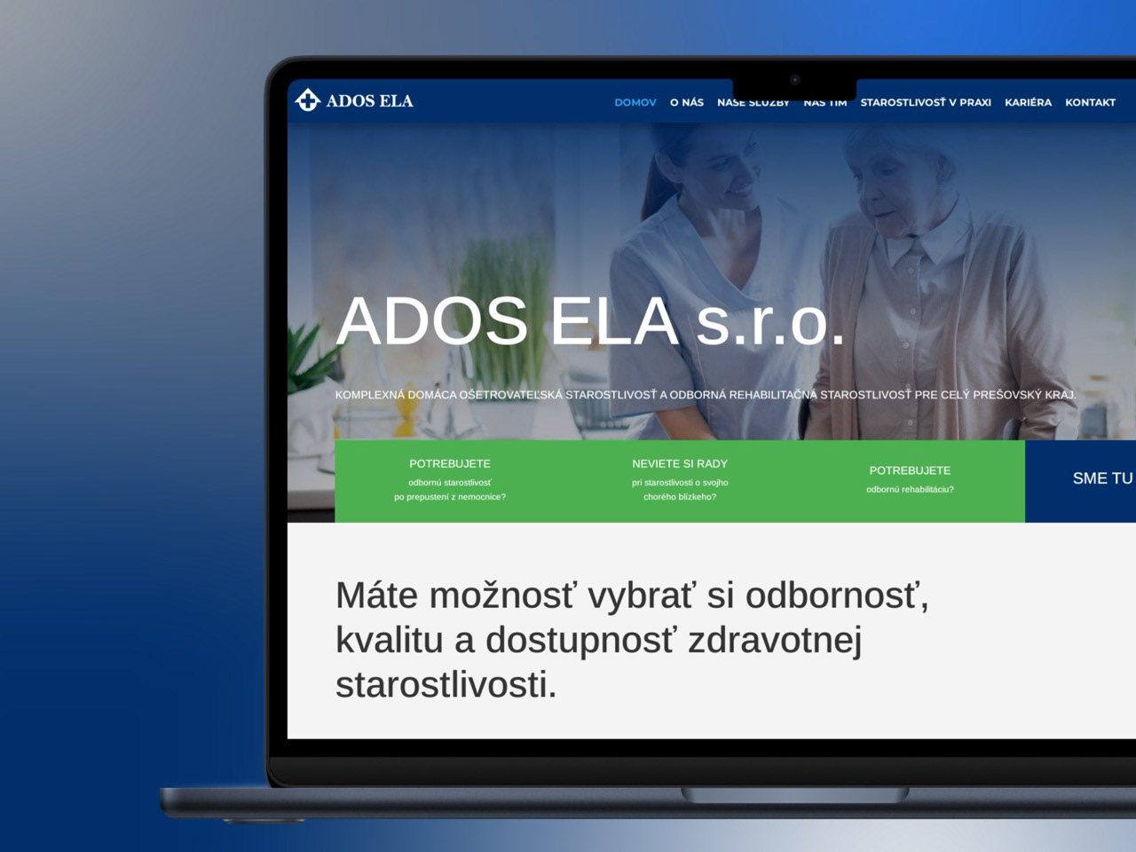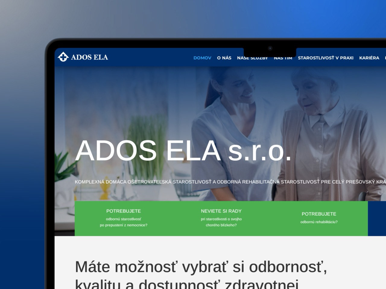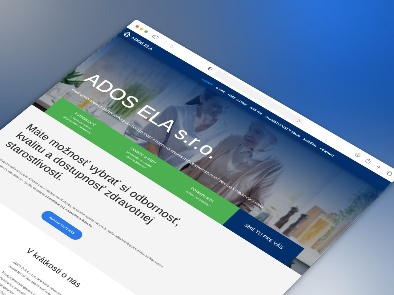 Tento web som navrhol a vytvoril pre spoločnosť ADOS ELA s.r.o., ktorá poskytuje komplexnú domácu ošetrovateľskú a odbornú rehabilitačnú starostlivosť v Prešovskom kraji.